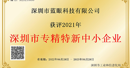 藍(lán)眼科技入選2021年“深圳市專精特新中小企業(yè)”名單